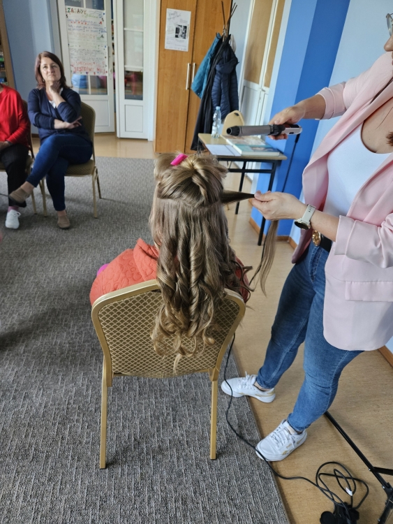 We wtorek, 7 maja, odbyło się kolejne spotkanie z cyklu Warsztaty Dyskusyjne Kobiet. Tym razem spotkaliśmy się z panią fryzjerką Anna Włodarczyk, która ciekawie opowiedziała o pielęgnacji włosów w warunkach domowych. Dowiedzieliśmy się jak myć, czesać i odżywiać włosy, jak dobierać szampony i odżywki. Po krótkim wykładzie, pani Anna zademonstrowała na ochotniczkach jak korzystać z prostownicy i lokówki, aby pojawiły się piękne loki. Miłym akcentem, były otrzymane materiały edukacyjne oraz upominki.