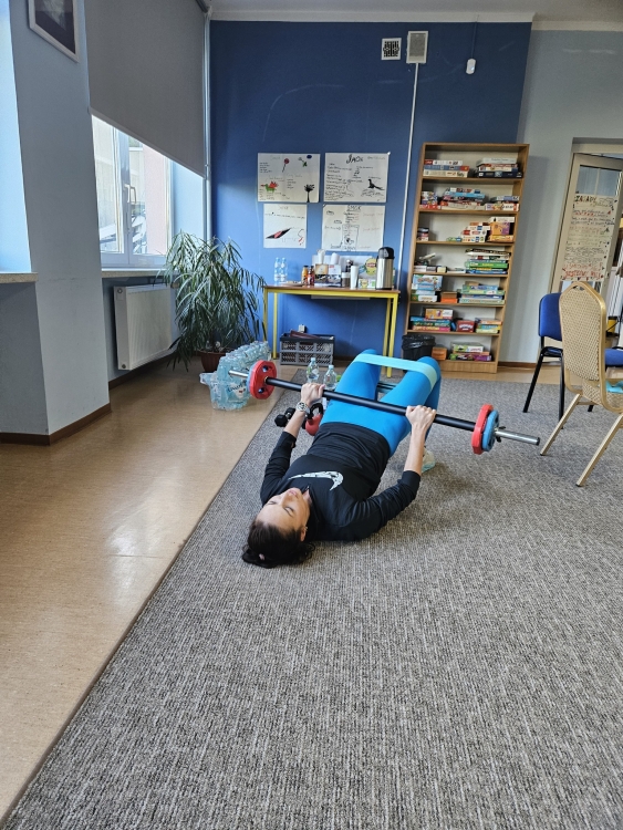Na warsztatach mogliśmy również spróbować ćwiczeń, które nam demonstrowała trenerka. Pokazała nam również jakie ćwiczenia możemy wykonywać w naszym domu.