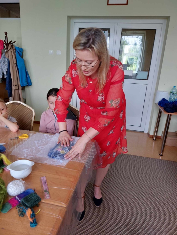 Uczestnicy, pod okiem wspaniałej pani Anny Ćwiklińskiej, mogli wykonać piękne zakładki z wełny, techniką filcowania na mokro. W pracowitej atmosferze wyszły zachwycające prace.