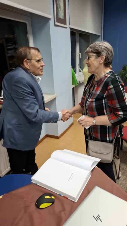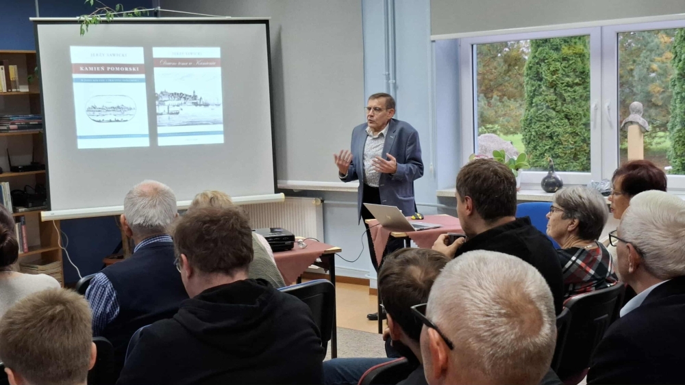 Z inicjatywy Księgarnia "Wiedza" w piątkowe popołudnie (10 października) w naszej Bibliotece odbyło się spotkanie z Jerzym Sawickim, autorem popularnych opracowań z historii Kamienia Pomorskiego. Licznie zgromadzeni słuchacze mieli okazję wysłuchać ciekawego wykładu na temat spędzonego w Kamieniu Pomorskim dzieciństwa naszego gościa, rozważań o odległej, jak i najnowszej historii Pomorza Zachodniego. Wspominał o poszukiwaniu tożsamości swojej, jak i mieszkańców przybyłych po II wojnie światowej na te tereny.