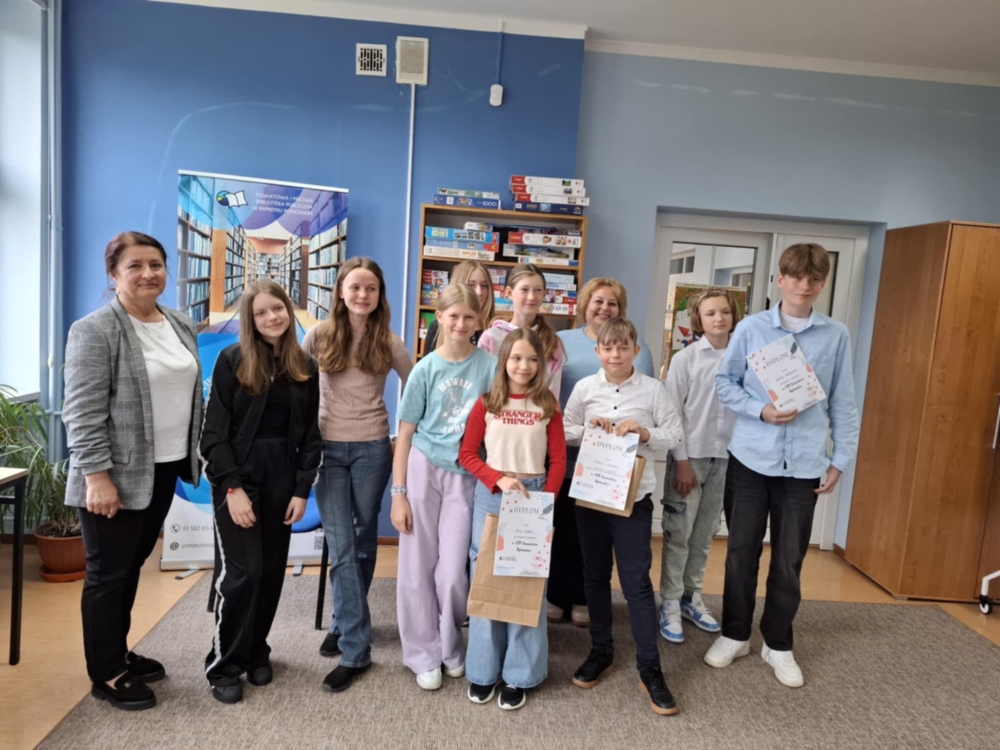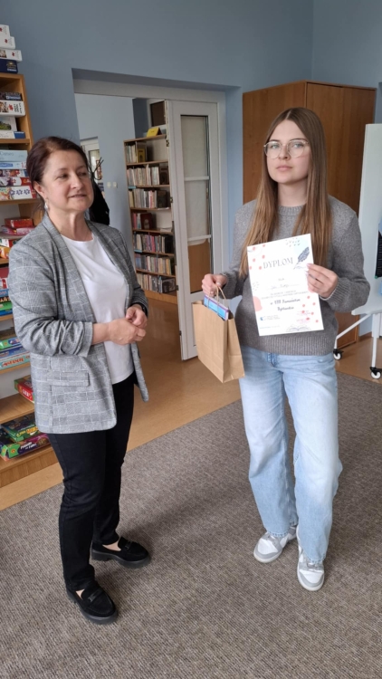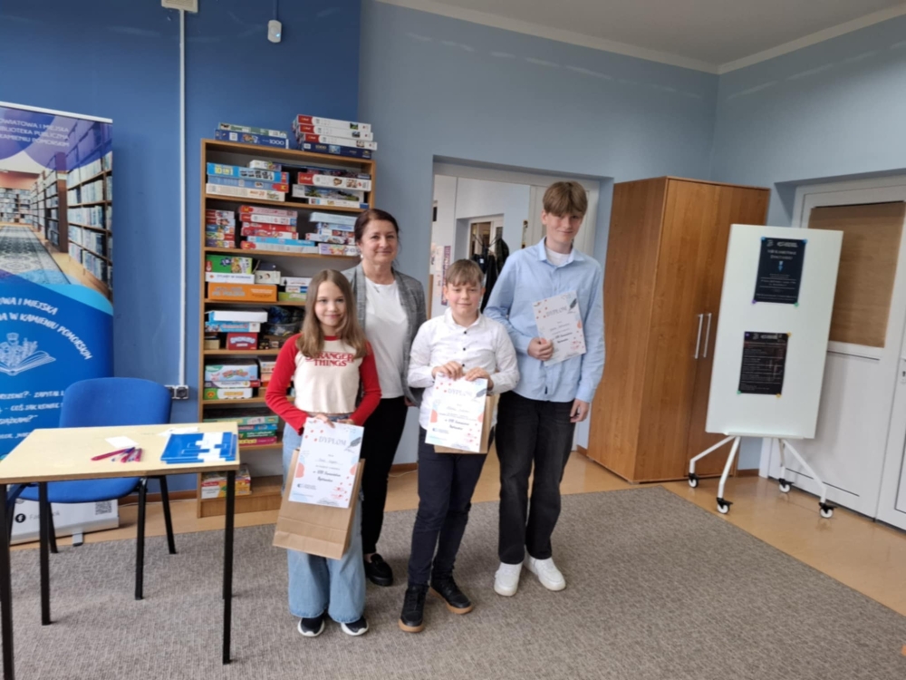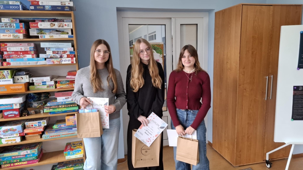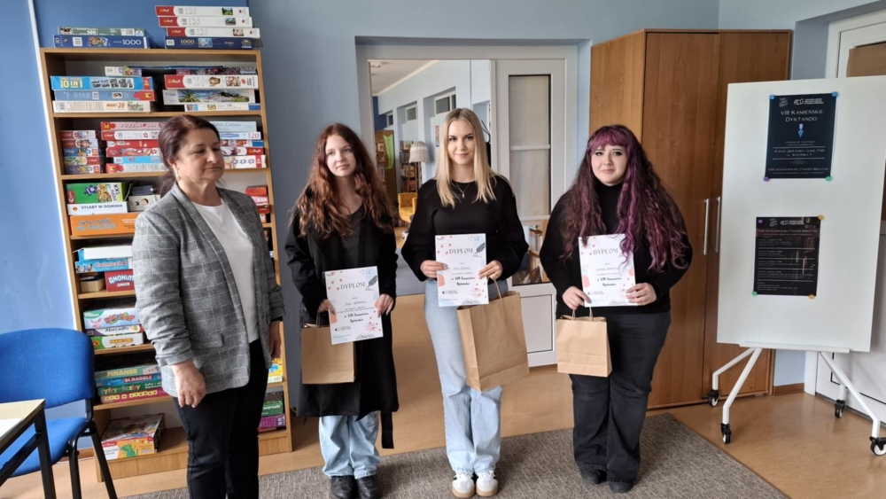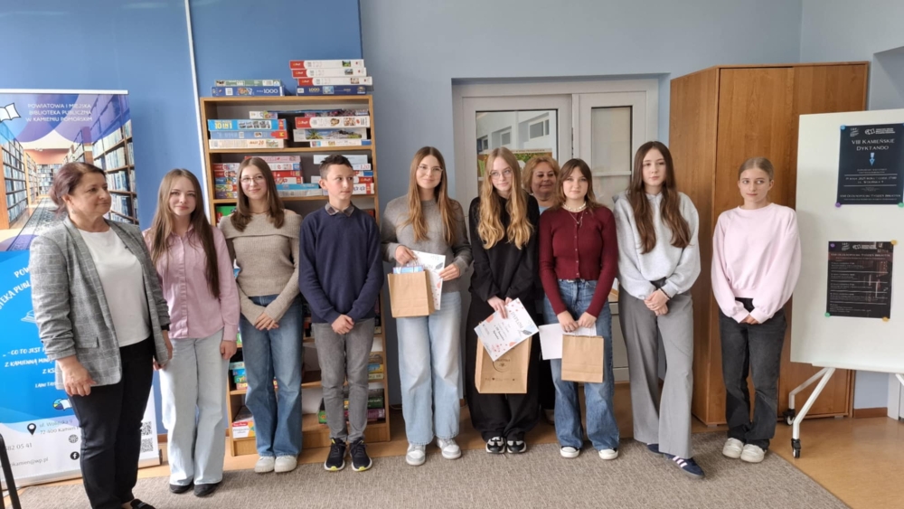 Tegoroczne obchody Tygodnia Bibliotek w Powiatowej i Miejskiej Bibliotece Publicznej w Kamieniu Pomorskim zakończyło Wielkie Kamieńskie Dyktando. 19 maja, po raz ósmy, w szranki z zawiłościami pisowni języka polskiego stanęli młodsi i starsi mieszkańcy naszego miasta. Zadaniem uczestników było napisanie podyktowanego tekstu z jak najmniejszą liczbą błędów ortograficznych i interpunkcyjnych. Dyktando przeprowadzono w czterech grupach wiekowych. Pierwsza grupa to uczniowie klas IV-VI, druga grupa to uczniowie klas VII-VIII szkół podstawowych, trzecia to uczniowie szkół średnich, zaś ostatnia to dorośli. Jest nam niezmiernie miło poinformować , że wśród najmłodszej grupy trzecie miejsce zajął Jakub Interewicz (Szkoła Podstawowa nr 1), drugie miejsce zajęła Oliwia Szynka (Szkoła Podstawowa nr 2), a tytuł Kamieńskiego Małego Mistrza Ortografii zdobył Miłosz Mazurek (Szkoła Podstawowa nr 1). W grupie drugiej trzecie miejsce zajęła Martyna Skierska , drugie miejsce Kaja Piekarz, Mistrzem Ortografii została Julia Kuryś. Wszystkie laureatki są uczennicami Szkoły Podstawowej nr 2. W grupie trzeciej , trzecie miejsce zajęła Lilianna Kazanecka z Liceum Ogólnokształcącego, drugie miejsce Nina Zaliwska z Liceum Ogólnokształcącego, zaś Mistrzynią Ortografii została Alicja Grabowska z Zespołu Szkół Ponadpodstawowych. W grupie dorosłych trzecie miejsce zajął pan Krzysztof Kulka, drugie miejsce pani Justyna Cieszyńska, Kamieńskim Mistrzem Ortografii 2025 została pani Olga Skotarek. Wszystkim laureatom serdecznie gratulujemy!